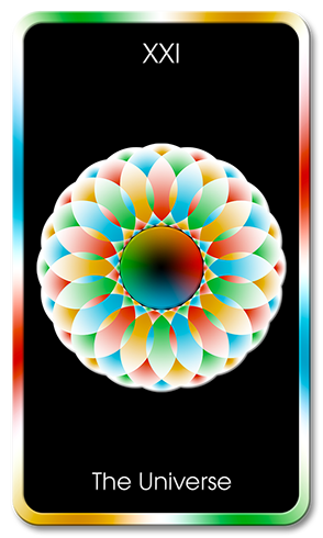 All forms emerge and return to its essence. The Orbifold Tarot taps into your subconscious and intuitive capacities, based on what you already associate with Numbers, Elements, color, and pattern. Its geometries and intrinsic interconnections are evocative and stimulating, yet strangely calming — they facilitate a deep meditative state from which new connections are drawn, unseen perspectives are revealed, and reflection leads to insight. The practice of gaining insight through symbolic representation is just as relevant today as it ever was. The tarot of today encompasses the guidance and reflection it always has while extending through traditional spheres. Our culture has evolved drastically beyond historical roles and structures, and yet our essence remains the same. We experience the same basic emotions and situations, investigate the same universal questions, and express our fundamental natures in much the same way we always have. Over the past century, our art has expressed this evolution from abstraction to hyper-realism, figurative to non-representational, and more recently, a movement toward the simple beauty of minimal, even "flat" design. Despite these cultural evolutions, tarot has largely favored the scenic depictions established by Pamela Colman Smith over a century ago. While these representations are rich with symbolism and communicate timeless principles, some readers find these traditional scenic depictions somewhat limiting. The Orbifold Tarot opens the possibilities to new and exciting applications of these same timeless principles with our most basic and universal symbol — the circle. As the circle defines space, the four Elements — the essential qualities of nature — are also defined within that space. The Orbifold Tarot reveals the fundamental structure underlying tarot's elegant system through the interplay and proportion of these Elements. Circles, Numbers, and Elements express this system in a way that is both beautiful and minimal. From simplicity rises complexity, and complexity reduces to simplicity. Each card represents rhythm, balance, and pattern — in contrast to the chaos of life, reflected by the shuffled deck. Those familiar with the Marseille tradition will appreciate the freedom afforded by returning to the basic Number and Element associations intrinsic to tarot; those more familiar with the scenic traditions will find The Orbifold Tarot a valuable abstraction that tests and challenges your knowledge while opening up new possibilities for interpretation. The Orbifold Tarot is a mirror through which consciousness is reflected.