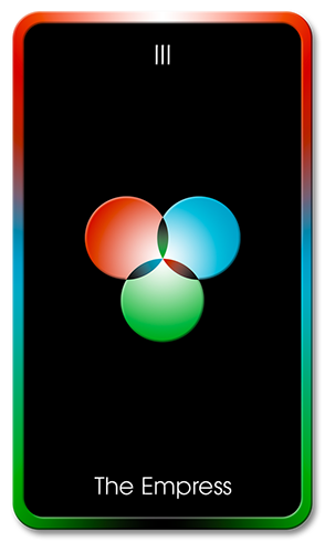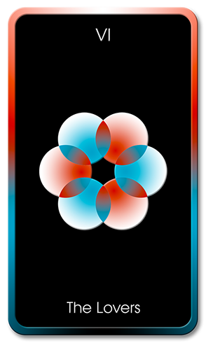 All forms emerge and return to its essence. The Orbifold Tarot taps into your subconscious and intuitive capacities, based on what you already associate with Numbers, Elements, color, and pattern. Its geometries and intrinsic interconnections are evocative and stimulating, yet strangely calming — they facilitate a deep meditative state from which new connections are drawn, unseen perspectives are revealed, and reflection leads to insight. The practice of gaining insight through symbolic representation is just as relevant today as it ever was. The tarot of today encompasses the guidance and reflection it always has while extending through traditional spheres. Our culture has evolved drastically beyond historical roles and structures, and yet our essence remains the same. We experience the same basic emotions and situations, investigate the same universal questions, and express our fundamental natures in much the same way we always have. Over the past century, our art has expressed this evolution from abstraction to hyper-realism, figurative to non-representational, and more recently, a movement toward the simple beauty of minimal, even "flat" design. Despite these cultural evolutions, tarot has largely favored the scenic depictions established by Pamela Colman Smith over a century ago. While these representations are rich with symbolism and communicate timeless principles, some readers find these traditional scenic depictions somewhat limiting. The Orbifold Tarot opens the possibilities to new and exciting applications of these same timeless principles with our most basic and universal symbol — the circle. As the circle defines space, the four Elements — the essential qualities of nature — are also defined within that space. The Orbifold Tarot reveals the fundamental structure underlying tarot's elegant system through the interplay and proportion of these Elements. Circles, Numbers, and Elements express this system in a way that is both beautiful and minimal. From simplicity rises complexity, and complexity reduces to simplicity. Each card represents rhythm, balance, and pattern — in contrast to the chaos of life, reflected by the shuffled deck. Those familiar with the Marseille tradition will appreciate the freedom afforded by returning to the basic Number and Element associations intrinsic to tarot; those more familiar with the scenic traditions will find The Orbifold Tarot a valuable abstraction that tests and challenges your knowledge while opening up new possibilities for interpretation. The Orbifold Tarot is a mirror through which consciousness is reflected.